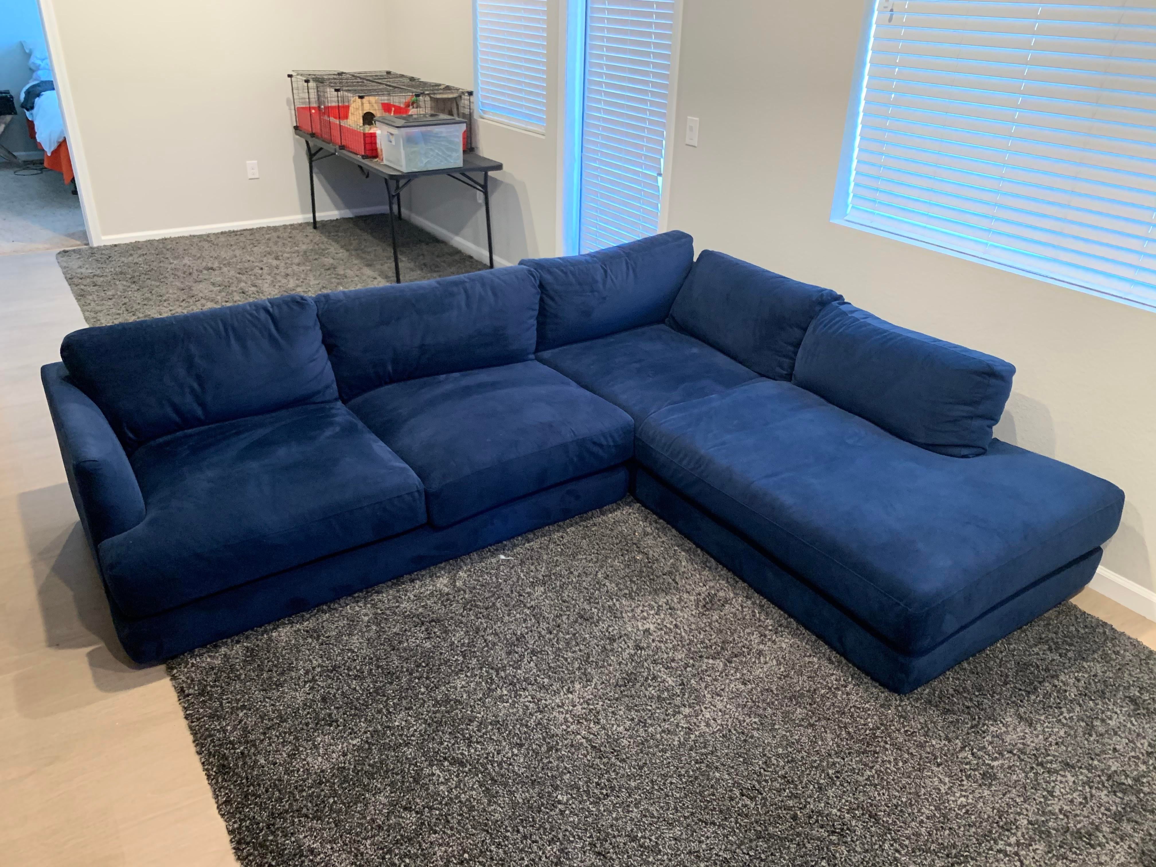 West Elm Blue Velvet Sectional Hot Sale