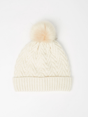 Cream Faux Pearl Embellished Bobble Hat