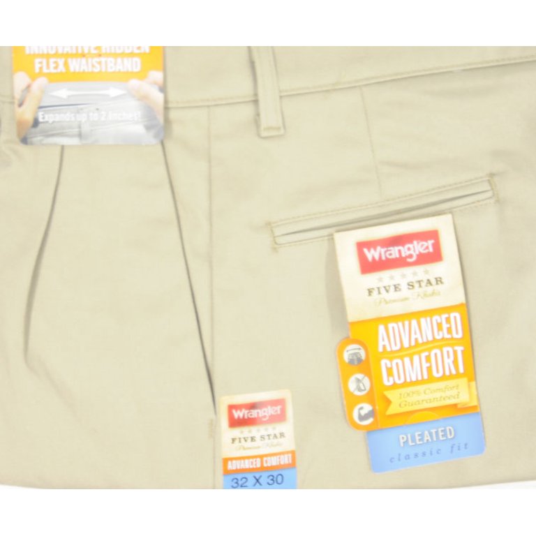 NEW Wrangler Classic Fit 34x30 Mens Pleated Khaki Pants Advance Comfort Beige | eBay