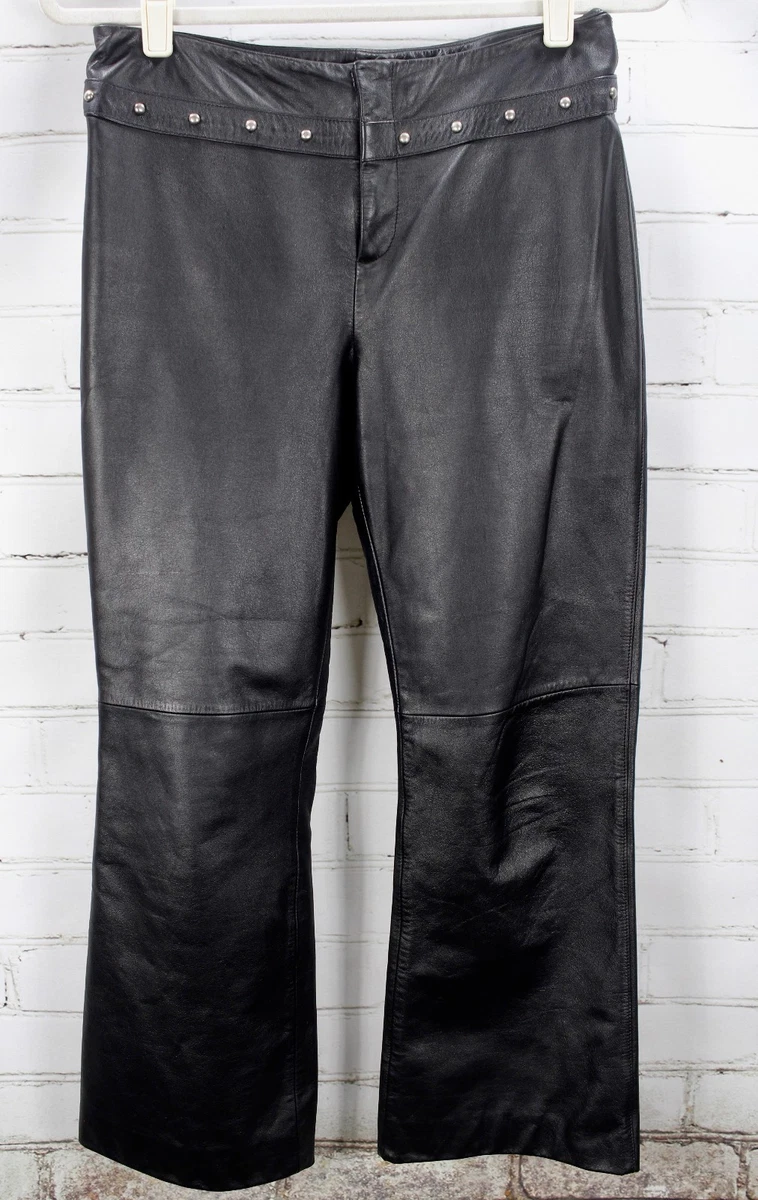 Ralph Lauren Black Leather Pants Women's Size 6 Studded Bootcut Leg | eBay