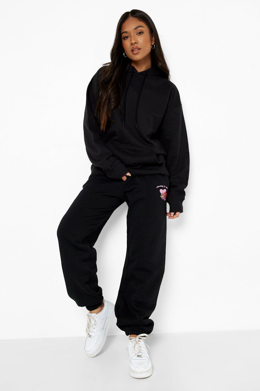 boohoo Petite Oversized Back Print Hoody Tracksuit - Black - Size L