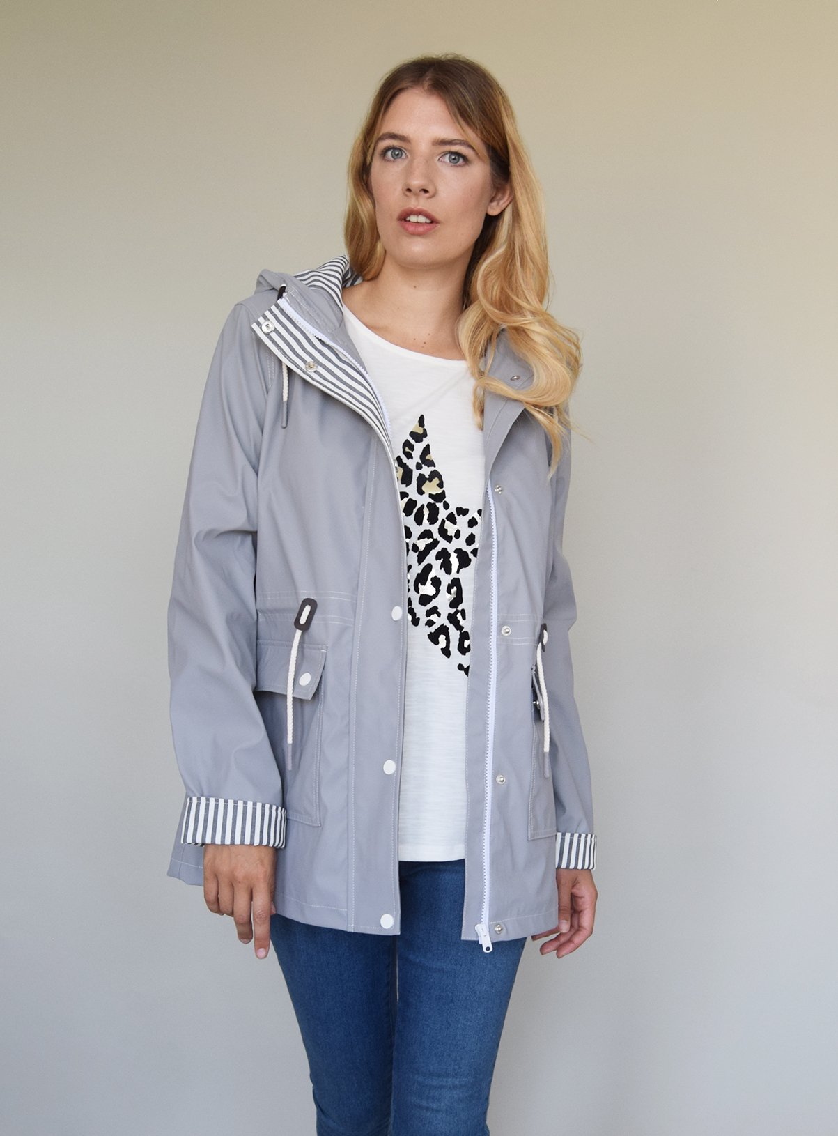 Womens Grey Rubber Showerproof Coat