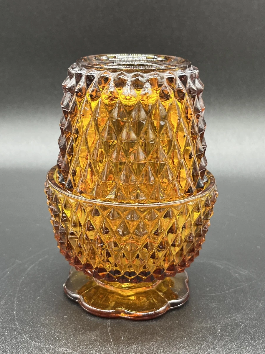 Vintage Indiana Art Glass Golden Amber Diamond Point Fairy Lamp Floral Base Nice | eBay