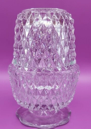 Vintage Indiana Glass Clear Diamond Point Footed Fairy Lamp | eBay