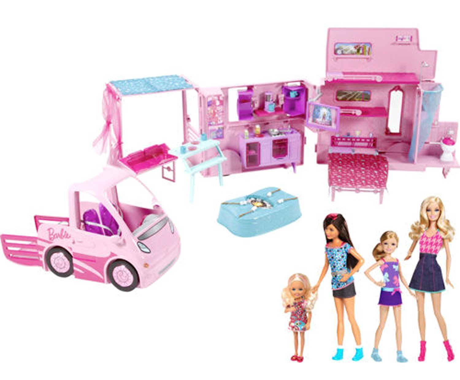 Amazon.com: 2013 Barbie Sisters' Deluxe Camper Bundle Play Set with 4 Dolls and Fab Cab RV: Toys