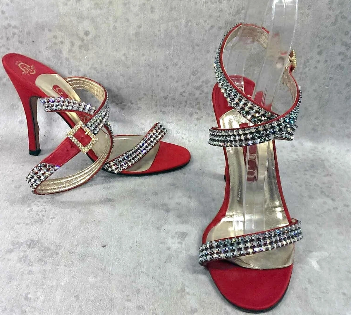 Gina Rox ankle wrap around crystal sandals diamante crystal Red us 5.5 $1195 | eBay