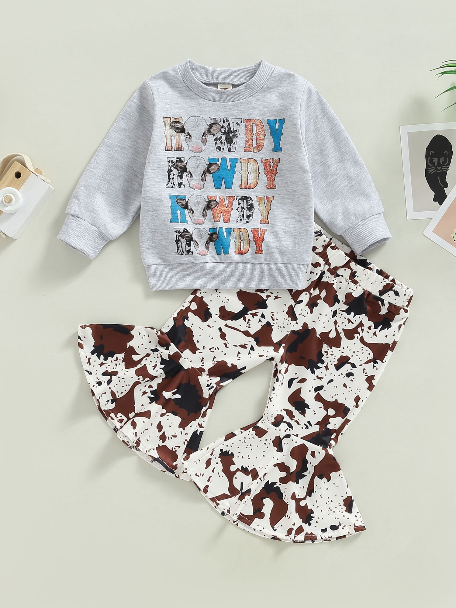Toddler Baby Girl Western Clothes Cowgirl Outfits Bell Bottoms Long Sleeve Sweatshirt Pullover