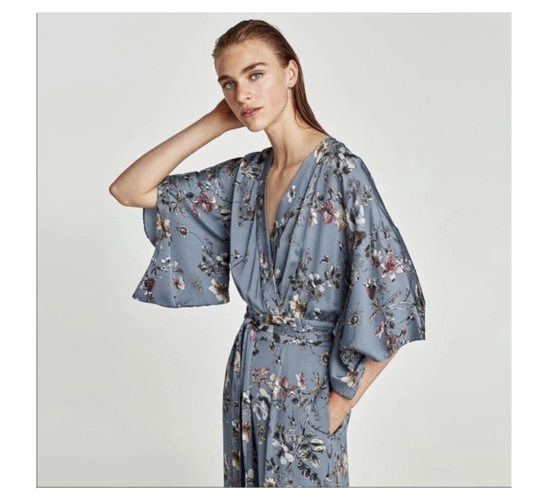 Zara Kimono Sleeve Peephole Back Wide Leg Jumpsuit Blue Size 10 M Floral Party | eBay