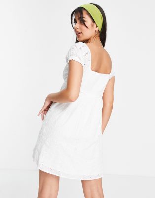 Eyelet Puff-Sleeve Mini Wrap Dress