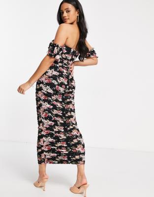 Rare London bardot ruched bodycon maxi
