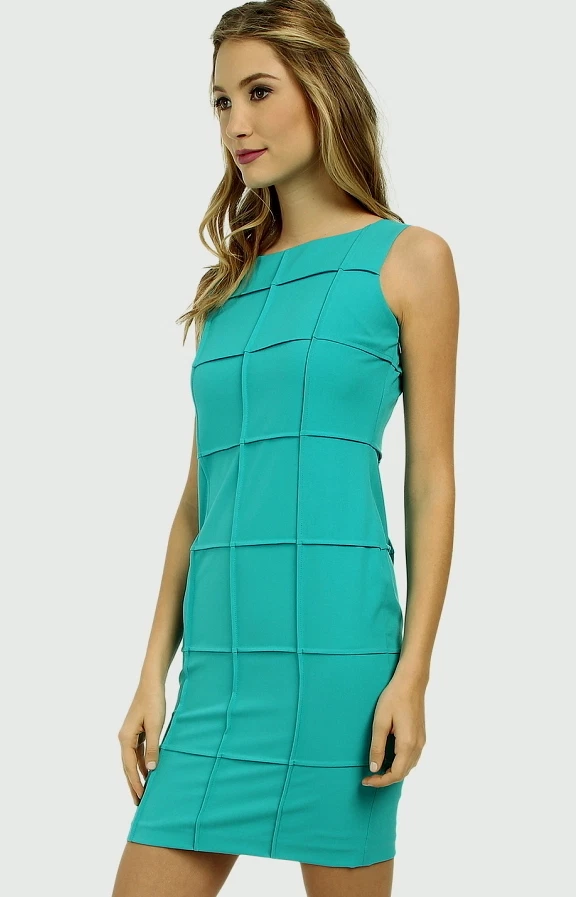 NWT $134 Calvin Klein Sleeveless Windowpane Sheath Dress Cyan Turquoise 6 | eBay