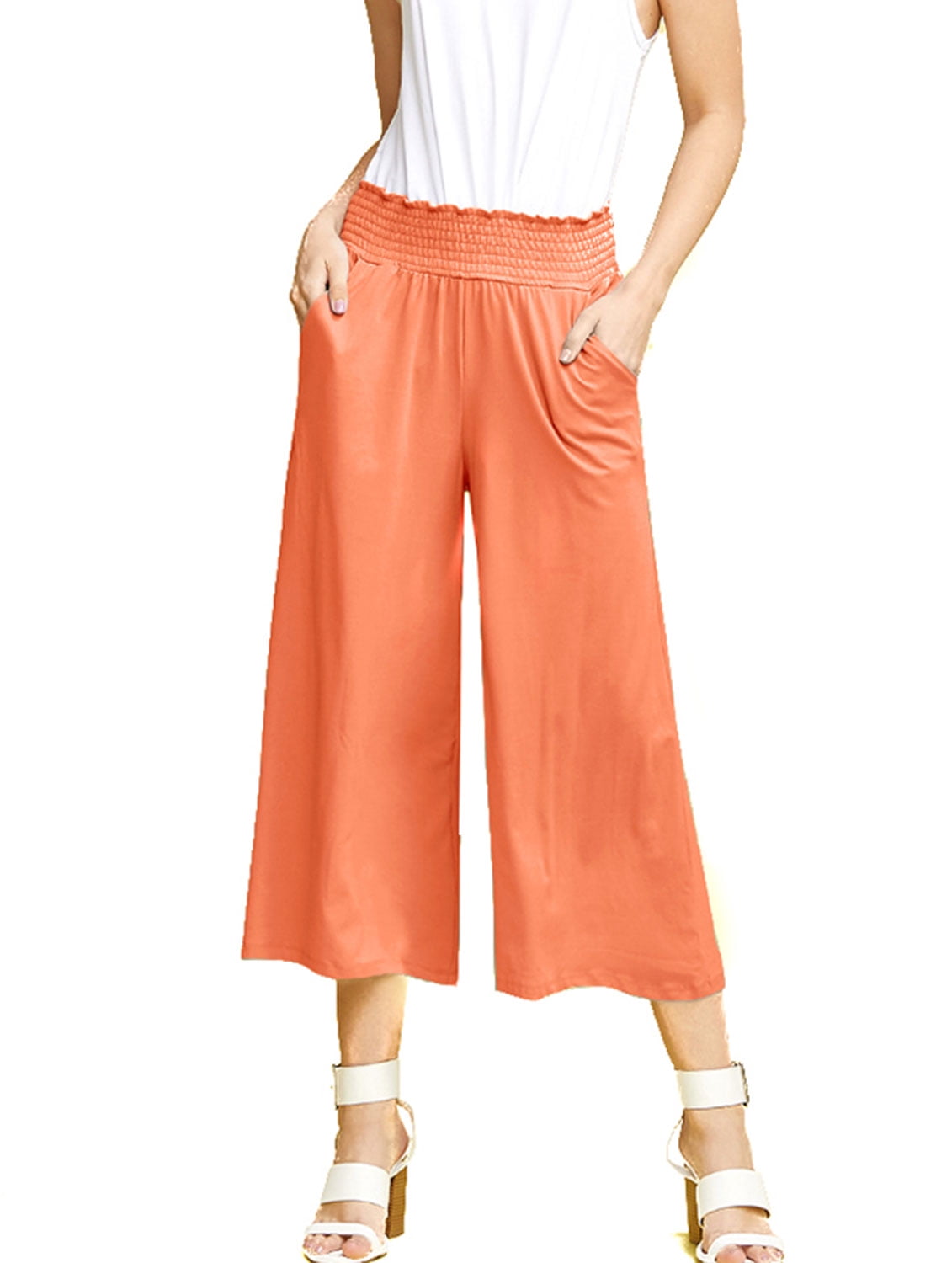 Smocked Waist Bend Gaucho Pants