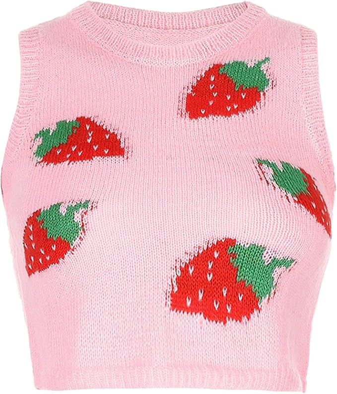 Sweet Sleeveless Sweater Vest Women Jumper Strawberry Knitted Crop Top