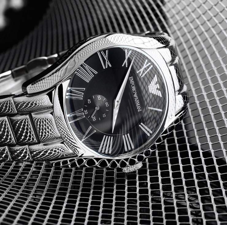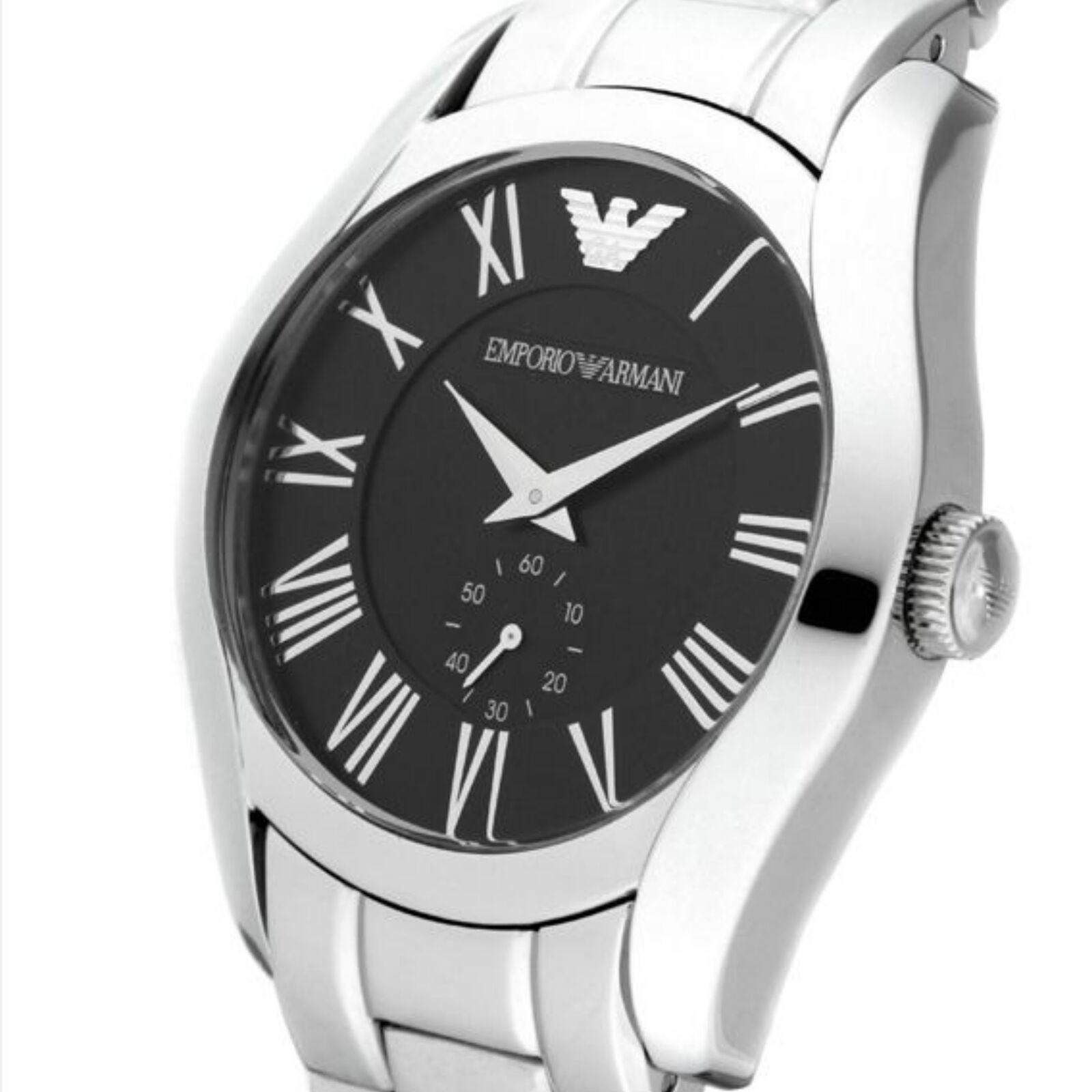 Emporio Armani AR0680 Black Dial Roman Numeral Silver Tone Watch Retail for sale online | eBay