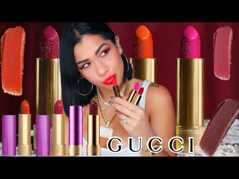 GUCCI rouge a levres lunaison glitter lipsticks | swatches, tryon and first impressions - YouTube