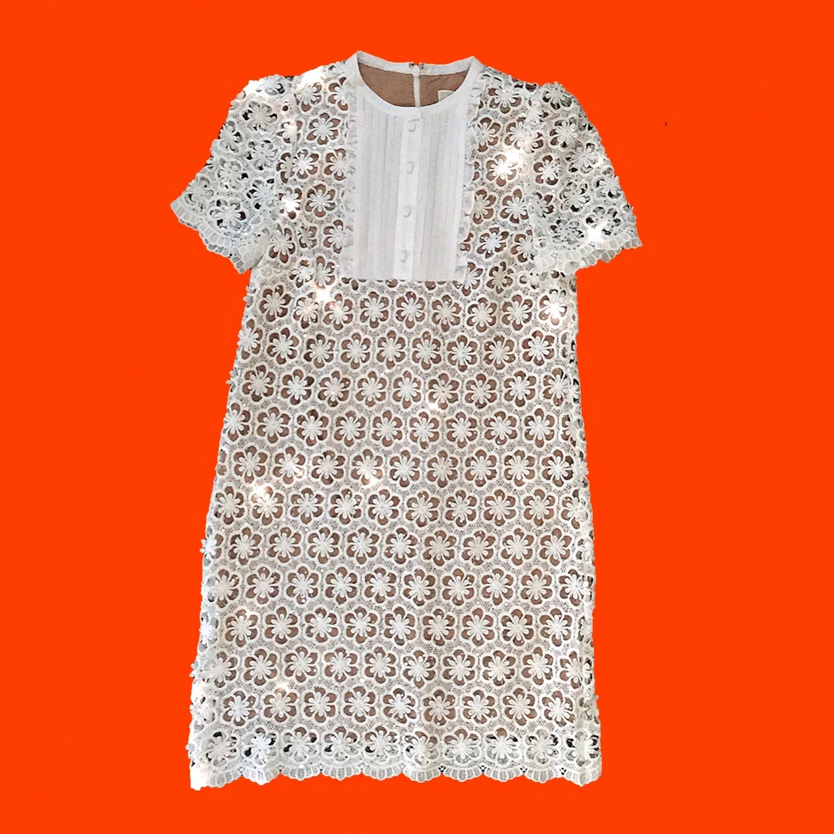 White Sequin Floral Lace Shift Michael Kors Dress Sz S Neiman Marcus NWT $295 | eBay