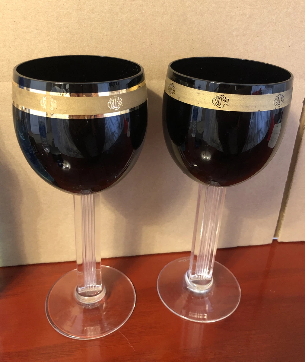 CHRISTIAN DIOR Wine Glass Crystal BLACK STEM Pair Nice Vintage Collectible 2 Pc | eBay